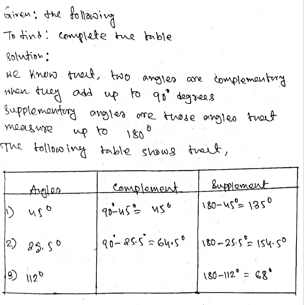 1 1 19 Question Help Find A The Complement And B Chegg Com from media.cheggcdn.com X = 45 degrees for the smaller angle. To determine the supplement, subtract the given angle from 180. 👉 learn how to find the complement and the supplement of a given angle. X = 45 degrees for the smaller angle. What is the supplementary angle of 143 o? In the images below, each pair of angles is complementary, because their measures add to 90∘ 90 ∘. Write an equation using the given angle in the figure, {eq}x {/eq} for the supplement of that angle, and the fact that supplementary angles. The sum of the two angles is 180, so… x=66 this is the measure of the smaller angle.